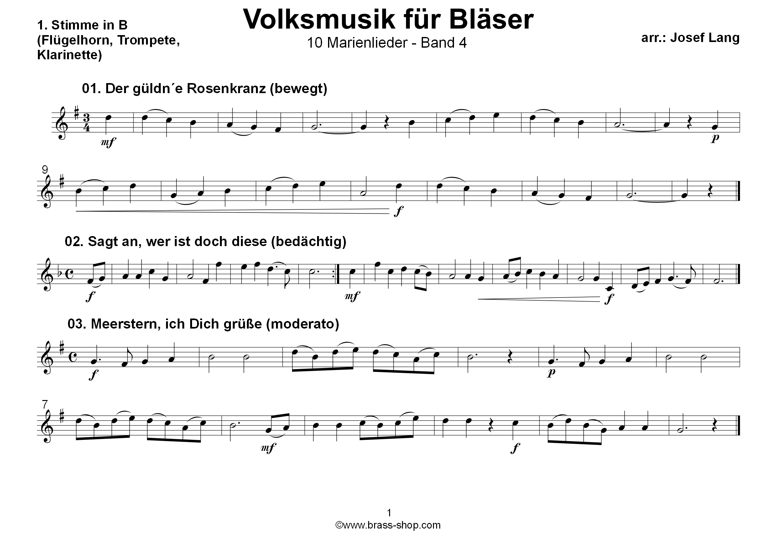 Volksmusik für Bläser (Band 4) – 10 Marienlieder