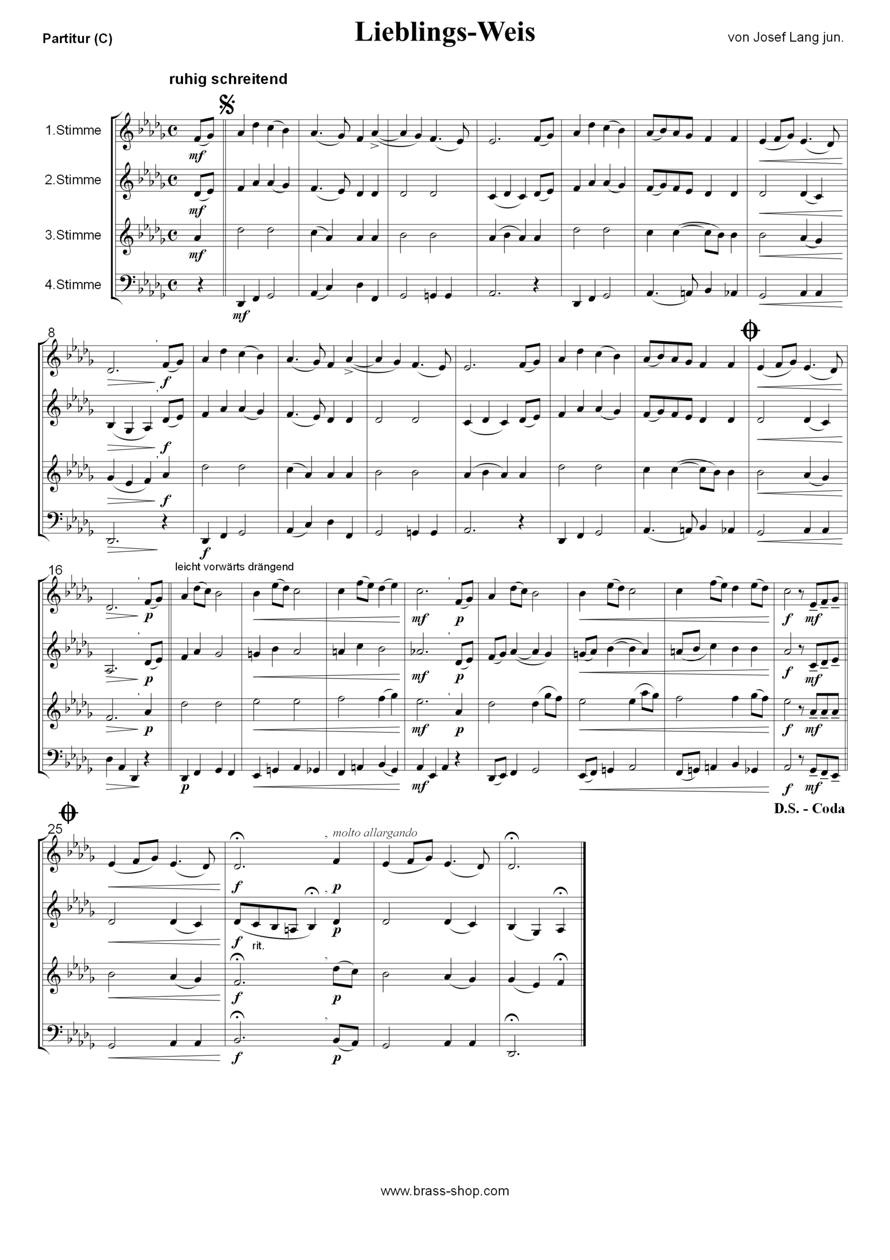 Besetzung: Flügelhorn 1/2 (B), Posaune (B/C), Akkordeon (C), Tuba (B/C) und Klarinette (B) optional
